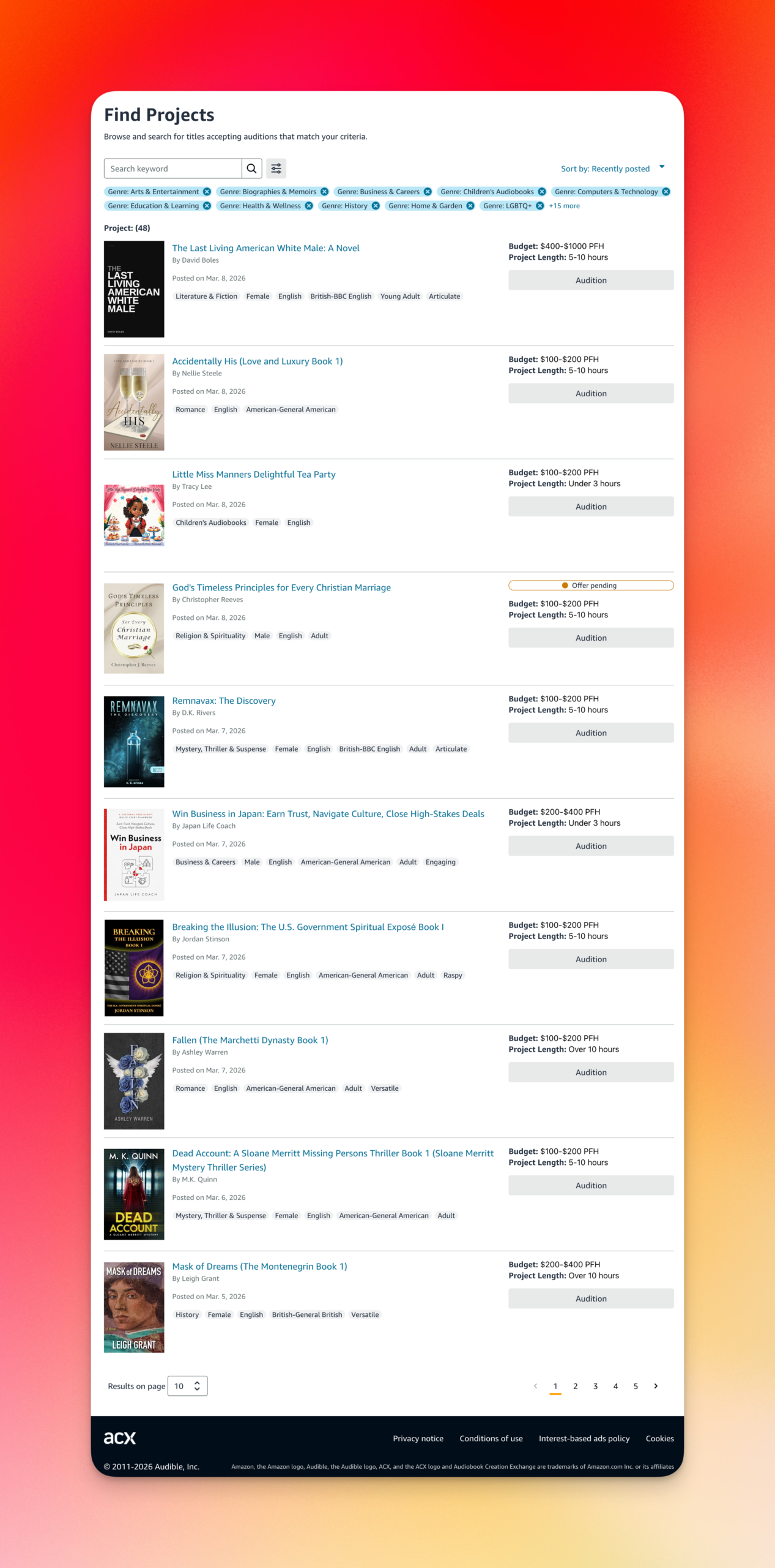 Auditions pop up everyday on ACX – it’s about figuring out which ones are good for you.