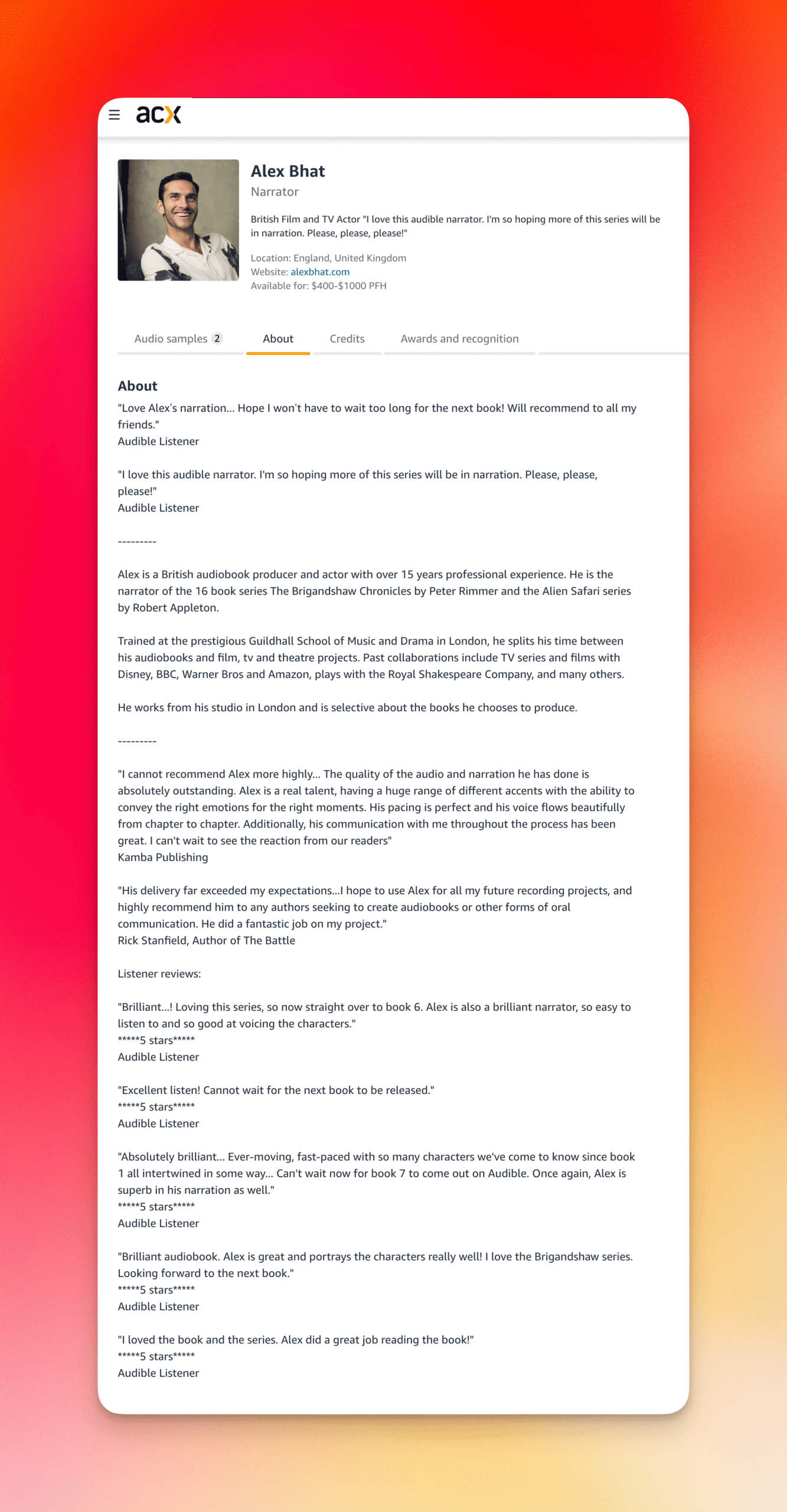 When I’m talking to another actor and I tell them my day job is narrating audiobooks from my bedroom they’ll usually say something along the lines of: