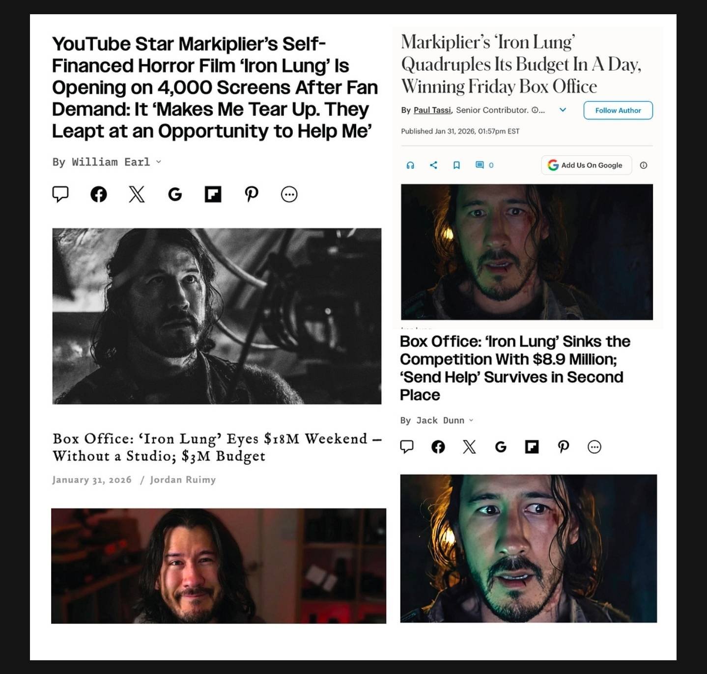Made by youtuber Markiplier who asked his fans to request they screen the film in their local cinemas – he expected maybe 50 screens.